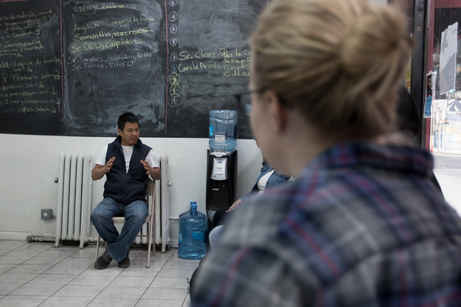 Sobre la acera de la calle 69 y Roosevelt, en Queens, cerca de treinta hombres se encuentran dispersos. Se reúnen en grupos de dos o tres, hablan poco entre ellos. Ocasionalmente pasa un carro -un pickup, una van o una suburban grande- bajando el paso. El carro funciona como el pitido del árbitro en un partido de fútbol: Los hombres se realinean, acercándose -tentativamente-. Cuando baja la ventana es claro que el partido ha comenzado. Cómo drive through de McDonalds, se puede conseguir quien te ayude con la mudanza, te repare tuberías, te construya un muro o te ayude a soldar un portón a $100 dólares el día.